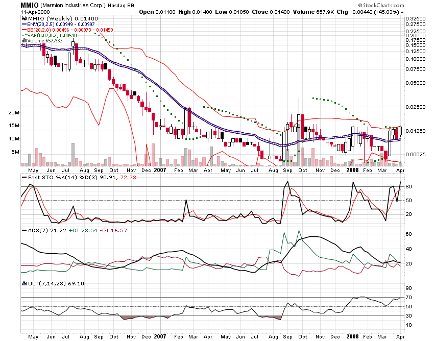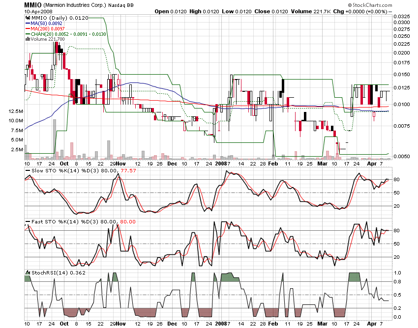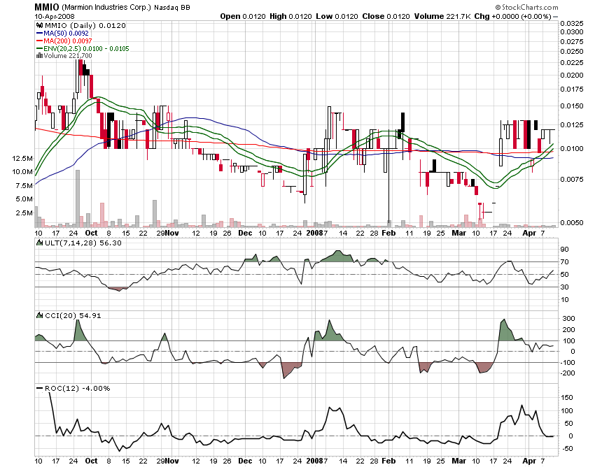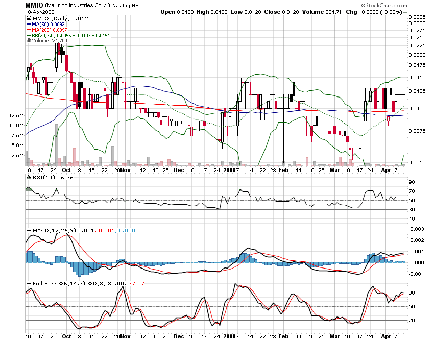 HOUSTON, April 10 /PRNewswire-FirstCall/ -- Marmion Industries Corp (OTC Bulletin Board: MMIO), (the 'Company') -- an emerging manufacturer and modifier of heating, ventilation, and air conditioning (HVAC) equipment -- today announced purchase orders for the one-week period ending 4/4/08 valued at $129,978.69.