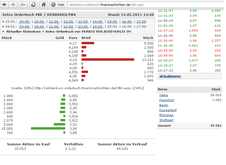 staatlich subvensioniert, was den europäischen Biodieselherstellern den Absatz extrem erschwerte.Ist aber jetzt vorbei! Ob aber die Rentabilität so enorm gestiegen ist - naja - warten wir´s mal ab. Würde aber anstelle Sauter auch auf jedenfall weiter an Biodiesel dranbleiben. Zumal es im gesamten Betriebsergebnis (Weiterverarbeitung der ausgepressten Ware in der Biogasanlage ectr. ) Auswirkungen haben kann, die für uns nicht unbedingt in den Biodieselzahlen zu finden sind.