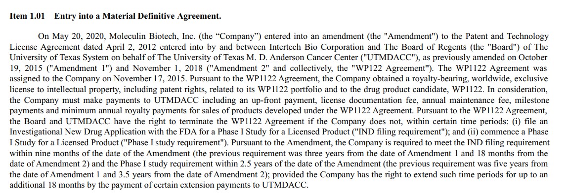 Auf der anderen Seite kann ich mir durchaus vorstellen, dass Fonald Dump blockiert, weil ihm ein anderes Mittel als Heilsbringer lieber wäre. Doch das ist ja seit dieser Woche mit den neuen Ergebnissen endgültig aus dem Rennen. Zumal Moleculin ja weiter arbeitet und eben "nur" nicht mehr handelbar ist.