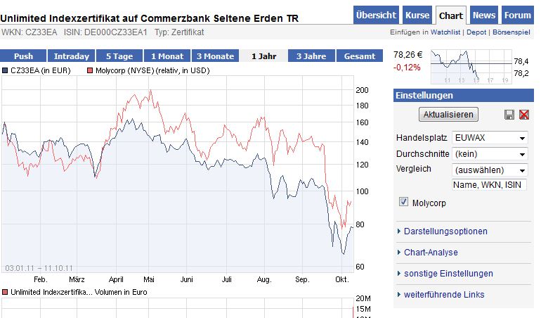 On Thursday evening, November 10, 2011, rare earth miner and producer Molycorp (MCP) reported strong earnings. There were no surprises given the strong guidance CEO Mark Smith delivered the previous week. Molycorp reported record margins and record revenues. Average sales price price increased 75% quarter-over-quarter to $131/kg of REO equivalent.