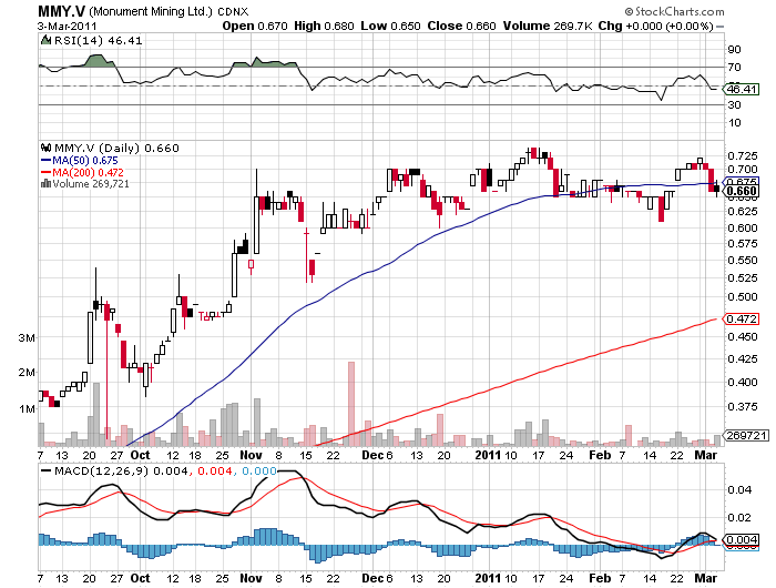 Und wohl die einzig positive Essenz dieses Kursverlaufes. Abgesehen davon ist die Präsenz von Monument auf der PDAC 2011 sehr erfreulich und als sinnvolle Aktivität der Öffentlichkeitsarbeit zu werten. Und das im Mutterland des Bergbaus mit Robert Baldock als Referent.