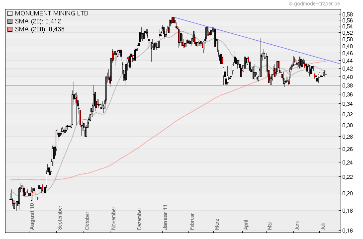 Monument Mining Limited (MMY an der TSX Venture) ist ein profitabler Produzent mit niedrigen Kosten, der zwei Hauptgoldprojekte betreibt, von denen eines – im Bergbau freundlichen Malaysia – bereits produziert. Mit der aktuellen Produktion hat Monument bereits einen soliden Cashflow, begrenzte bzw. keine Verbindlichkeiten, niedrige Produktionskosten, eine wachsende Produktion und Potenzial von einigen viel versprechenden Projekten. Das Unternehmen ist im Plan, auf seiner Hauptmine rund 40.000 Unzen Gold zu produzieren.