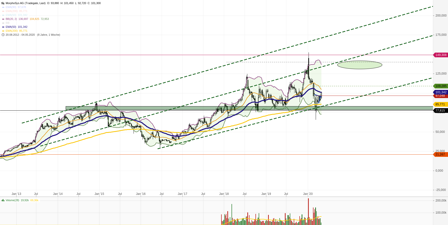 "Zum Ende des ersten Quartals 2020 verfügt MorphoSys über eine Liquiditätsposition von 1,1 Mrd. EUR" spricht dafür,