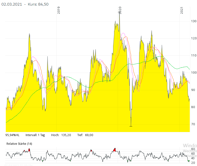 Chart vom 02.03.2021, Kurs 85,08 Euro, Kürzel MOR | Online Broker LYNX