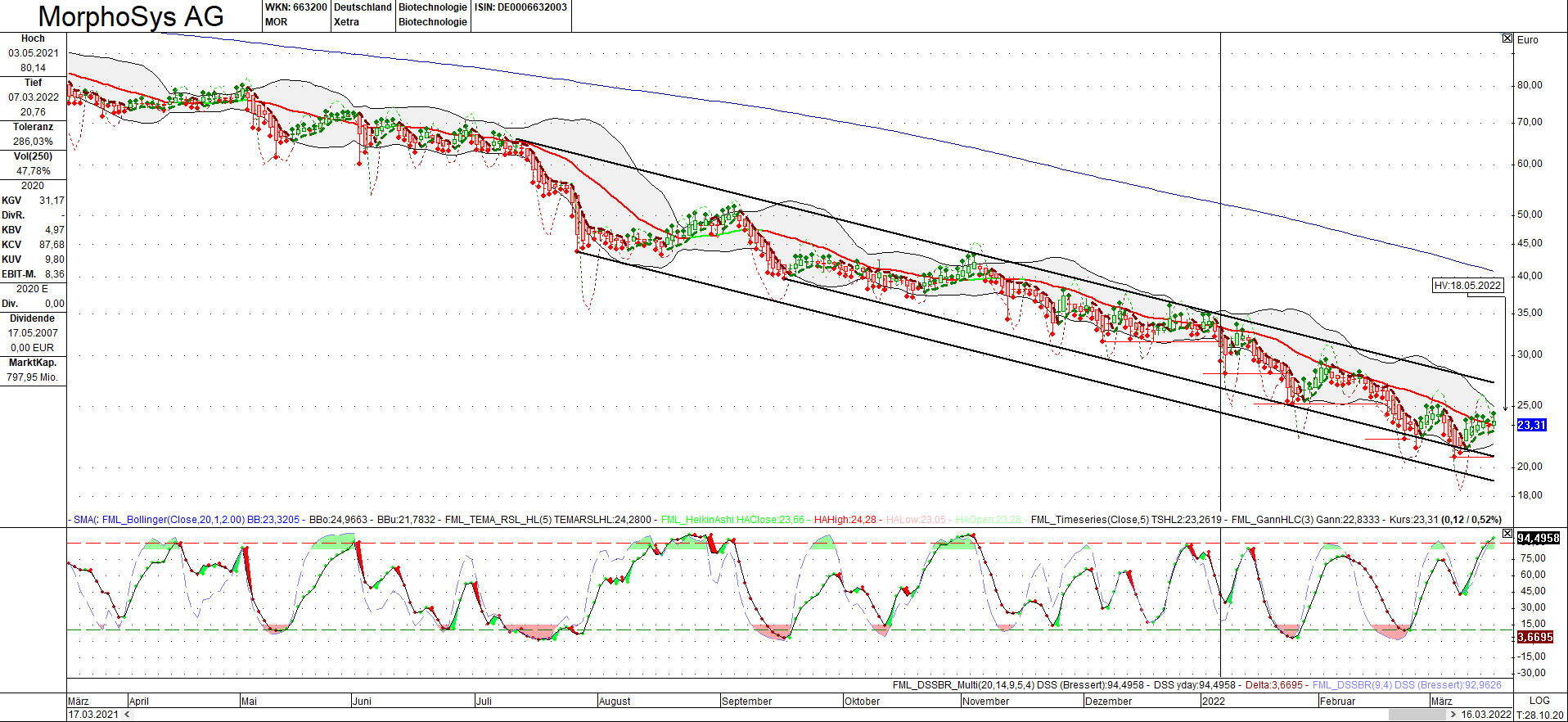 und was deine 25 € anbetrifft ... wäre ja dann genauso fragwürdig, denn dann könntest du genauso gut sagen, dass dann erst recht knapp darüber der Abwärtstrend verläuft. Macht also eher Sinn, jetzt zu kaufen und 10% mitzunehmen statt auf den Bruch der 25 zu warten, was technisch noch weniger Sinn ergibt, erst recht nach deiner Argumentation.