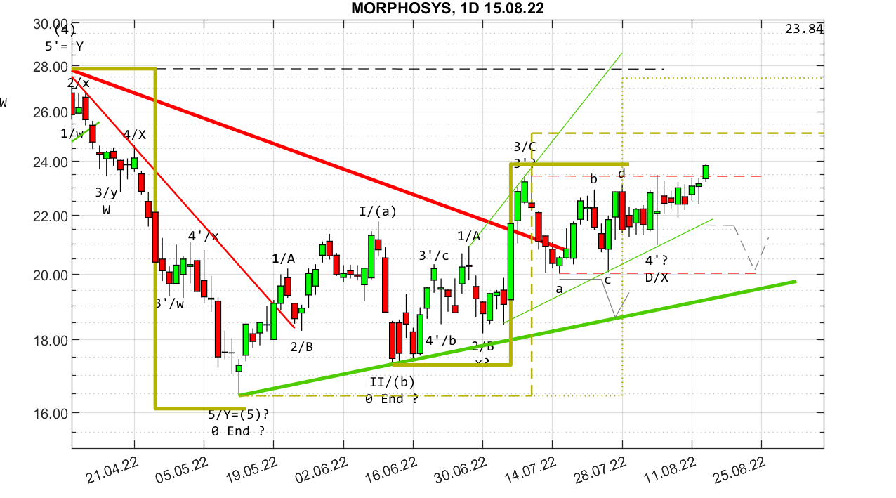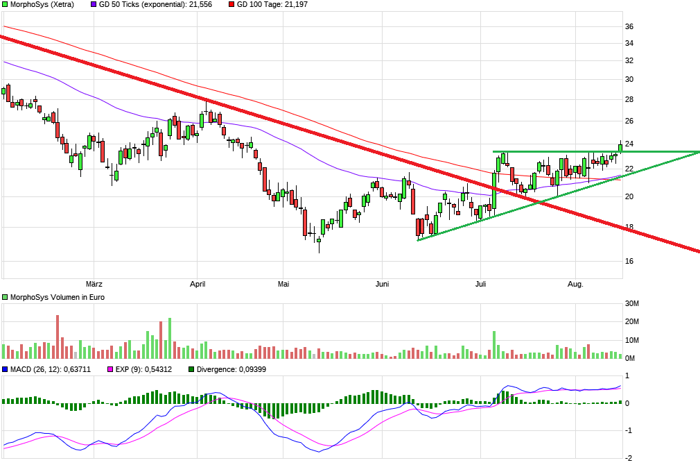 Auch stehen wir kurz vor der Auflösung des aufsteigenden Dreiecks.