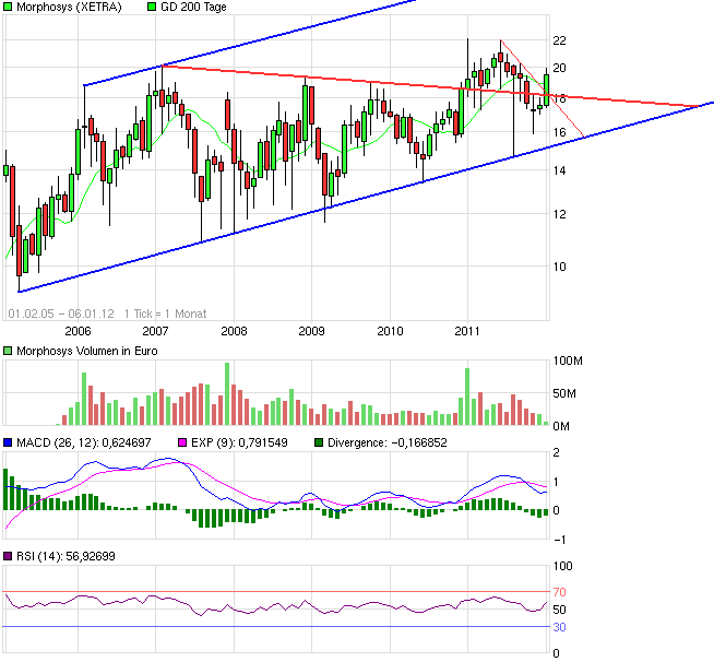 Das heißt man müsste bei einem Übernahmeangebot von 35 € pro Aktie gerade mal 550 Mio € investieren, um MOR zu übernehmen. Okay, später strebt man sicher die 100% an, aber das kann man ja langsam angehen. 550 Mio € für die Pipeline von MOR, und das wo man durch die Kooperation schon starken Einblick haben dürfte, ob die Projekte aus der Kooperation auch ne Zukunft haben. Gibt es da intern gute Daten in P2, erscheinen 550 Mio noch lächerlicher.