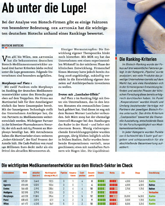 Noch denkt man bei Namen wie Glycotope, Ganymed, Antisense oder Affimed eher an seltsame Wesen aus Science-Fiction-Filmen als an erfolgreiche Unternehmen. Doch die neuen Hoffnungsträger der Biotechszene könnten es bald zu einiger Berühmtheit bringen. Die Firmen haben einen finanziellen Puffer von mindestens zwei Jahren. Und sie genießen das Vertrauen der Investoren. Im vergangenen Jahr sammelten die deutschen Topfirmen der zweiten Generation jeweils mehr als 20 Mio. Euro ein, hat das Biotechmagazin „Transkript“ ausgerechnet. So viel wurde schon lange nicht mehr in die zweite Reihe der Branche investiert.
