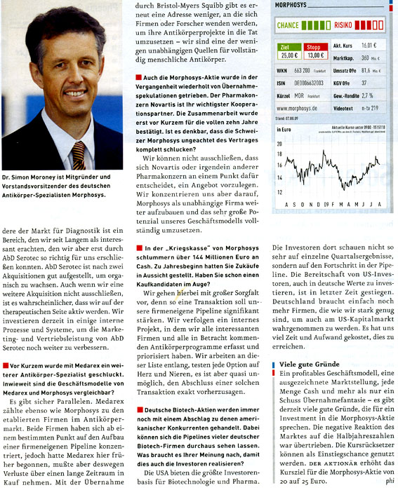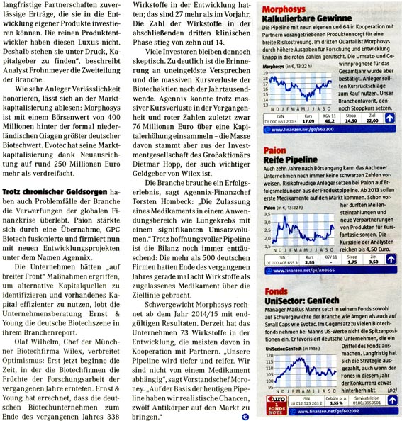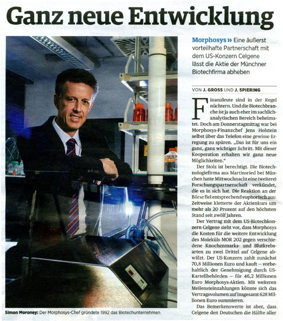 Die zweite Generation verfolgt eigene Ideen, ohne ständig an den Börsengang denken zu müssen. Für die Investoren gibt es inzwischen andere Möglichkeiten, mit Biotechfirmen Geld zu verdienen. Der Verkauf an einen Pharmakonzern ist sehr attraktiv. Den Konzernen mangelt es an neuen Produkten, und deshalb lechzen sie nach Innovationen. „Pharmafirmen sind heute eher bereit, früh über Biotech-Akquisitionen nachzudenken“, bestätigt 3i-Partner Stöckemann. Der Kauf von U3 ist dafür das beste Beispiel.
