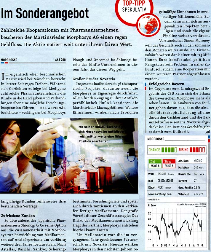 Noch denkt man bei Namen wie Glycotope, Ganymed, Antisense oder Affimed eher an seltsame Wesen aus Science-Fiction-Filmen als an erfolgreiche Unternehmen. Doch die neuen Hoffnungsträger der Biotechszene könnten es bald zu einiger Berühmtheit bringen. Die Firmen haben einen finanziellen Puffer von mindestens zwei Jahren. Und sie genießen das Vertrauen der Investoren. Im vergangenen Jahr sammelten die deutschen Topfirmen der zweiten Generation jeweils mehr als 20 Mio. Euro ein, hat das Biotechmagazin „Transkript“ ausgerechnet. So viel wurde schon lange nicht mehr in die zweite Reihe der Branche investiert.
