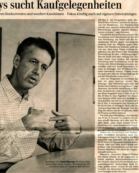 Die Analysten der Société Générale vergeben das Rating "hold" für den Anteilschein von MorphoSys. (Analyse vom 02.11.10) (02.11.2010/ac/a/t)
