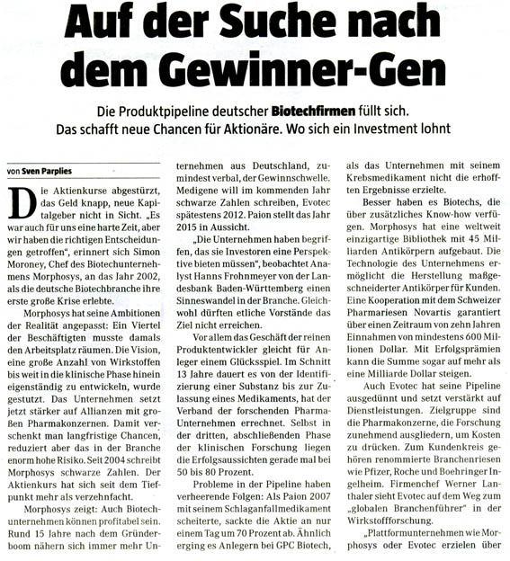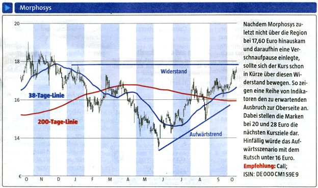 Grundsätzlich stehe man MorphoSys zwar positiv gegenüber, auf kurze Sicht sei man jedoch weiterhin zurückhaltend. So könnten in den kommenden Monaten zwei wichtige Partnerschaften auslaufen. Falls diese Kooperationen nicht verlängert würden, könnte sich das Jahr 2011 für MorphoSys als sehr schwierig erweisen. Bei der Société Générale habe man nun die EPS-Prognose für 2010 von 0,31 EUR auf 0,32 EUR erhöht (KGV: 54,6). Für 2011 und 2012 seien die EPS-Schätzungen hingegen um jeweils 0,01 EUR auf 0,40 EUR und auf 0,53 EUR reduziert worden. Das Kursziel belasse man bei 16,00 EUR.