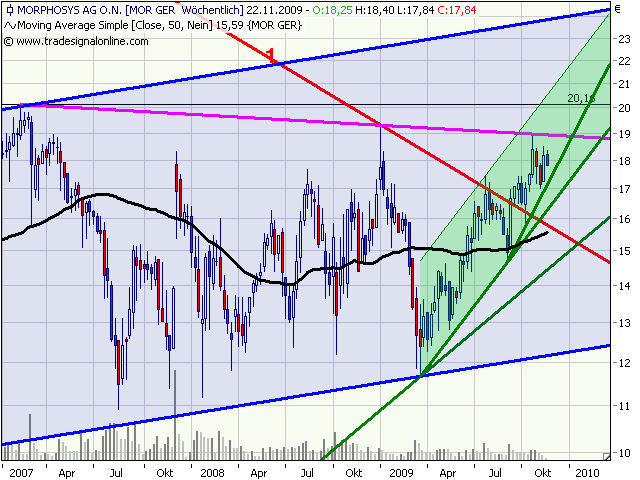 Zocker positionieren sich sofort in der Aktie von MorphoSys und spekulieren auf den Ausbruch, so Engelbert Hörmannsdorfer, Chefredakteur von "BetaFaktor" in der aktuellen Ausgabe vom "Doersam-Brief". Wer etwas längerfristig denke, beobachte und warte diese wichtige Chartentscheidung ab. Aber dann gelte das Kursziel 28 EUR. (Schlusskurs in Frankfurt am Freitag, den 20. November 2009: 17,85 EUR) (Ausgabe 459 vom 22.11.2009) (23.11.2009/ac/a/t)