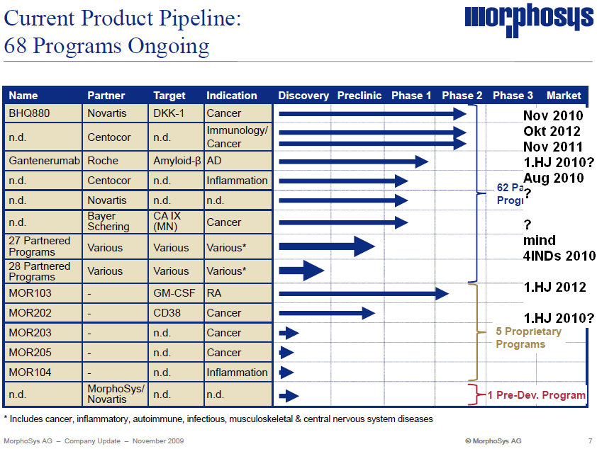 Nein, weil das ne lustige Vorstellung ist. Man stelle sich vor, MOR hat in 2 Jahren eine (Partner)Pipeline von 5 Projekten in P2 und 10 Projekten in P1, dazu 35 in vorklinischer Phase. Nur weil man noch nichts in P3 hat, und obwohl die Novartisrampe steiler wird, soll der Kurs plötzlich nen Kursprung machen, wenn die Meldung zur ersten P3 kommt?