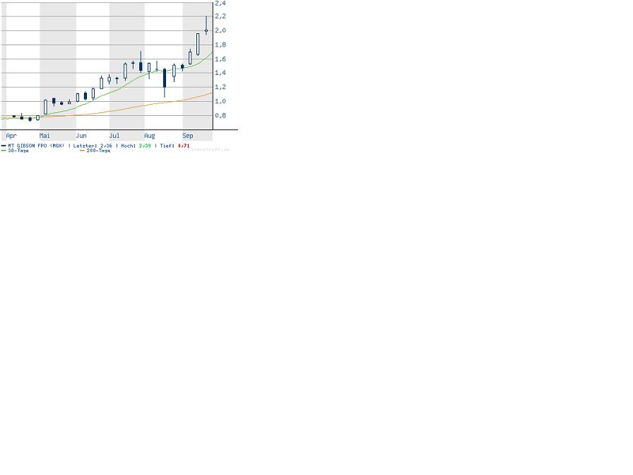 Millitorr Gibson Eisen erhielt auch seinen stellaren Durchlauf des letzten Monats aufrecht, um 17 an Rekord$2.15 unter wachsender Betrachtung stark zu schließen, daß sein russischer hauptsächlichaktionär ein vollerblühtes übernahmeangebot eyeing. Seit mid-August hat Millitorr Gibson fast im Wert zu gerechtem über $1.7 Milliarde geverdoppelt.