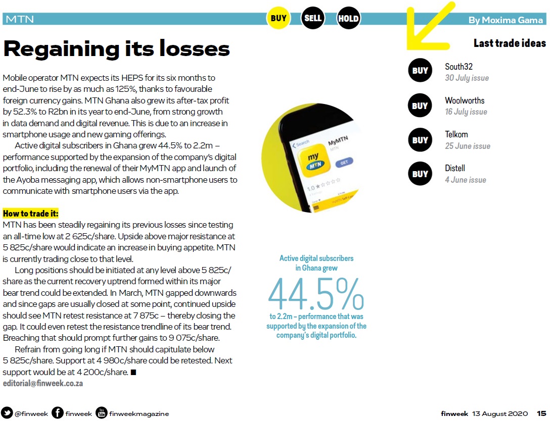 "Der anhaltende Umschwung im Verbraucher- und Unternehmensgeschäft von MTN SA hat jedoch eine erfreuliche Verbesserung des Wachstumstrends bei den sequentiellen Service-Einnahmen im zweiten Quartal unterstützt", sagte Shuter.