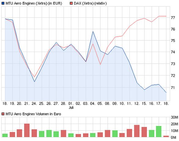 Rückblick: Die Aktie von MTU befindet sich in einer langfristigen Aufwärtsbewegung. Im Rahmen dieser langfristigen Aufwärtsbewegung startete die Aktie Ende November 2011 eine mittelfristige Rally, welche die Aktie auf ein neues Allzeithoch bei 64,80 Euro führte. Dieses hoch erreichte die Aktie am 30. April. Seitdem kommt es zu Abschlägen. Bisher ist die mittelfristige Aufwärtsbewegung aber noch vollkommen intakt. Bei 60,02 bis 59,65 Euro liegt mit dem Aufwärtstrend seit November und der exp. GDL 50 eine wichtige Unterstützungszone. Dieser Zone nähert sich der Wert aktuell deutlich an.