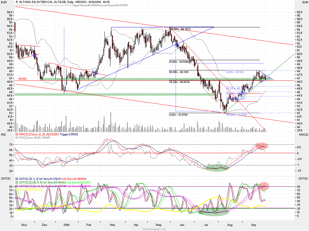 Mit Bruch der Trendunterstützungslinie (TS1) im Bereich der 12,65 Euro ist Lufthansa wieder in den Abwärtsstrudel geraten. Eine wichtige Unterstützung bildet hierbei zunächst das Tief der vergangenen Woche bei 9,10 Euro gefolgt vom August-Tief bei 8,42 Euro. Ein Bruch dieser Unterstützungszone würde nochmals einen deutlichen Abschwung und einen minimalen Test der Zone um 7,50/7,00 Euro-Marke erwarten lassen. Auf der Oberseite bildet die kurzfristige Trendwiderstandslinie (TR3) einen deutlichen Widerstand und hält somit die Abwärtsbewegung in Gang.