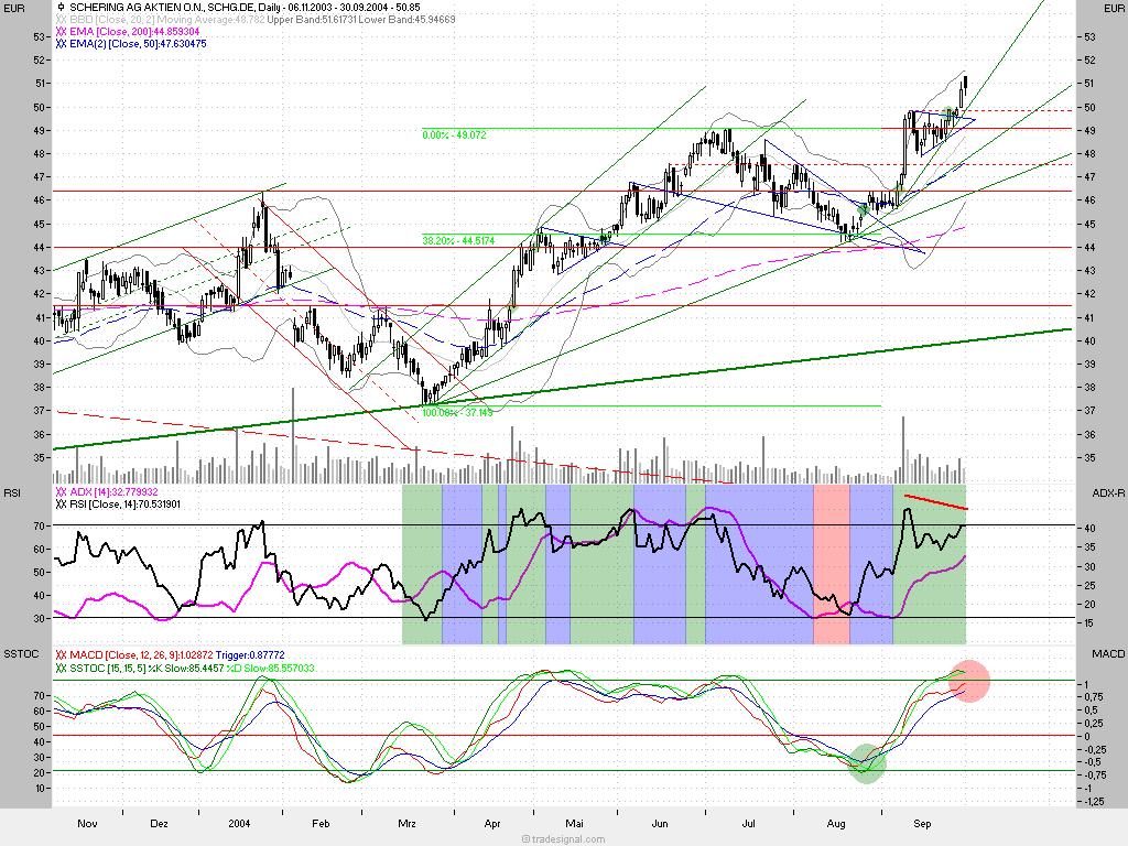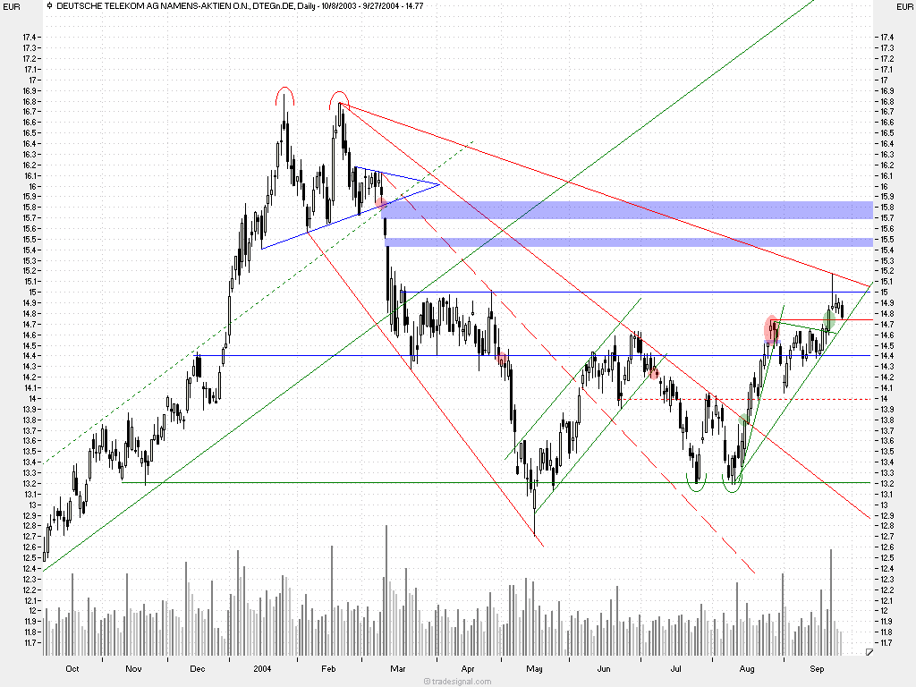 Die Tiefbildung erfolgte 24 Monate später im Bereich der 6,63 Euro-Marke und wurde sowohl durch ein Wochenreversal-Signal als auch durch die Ausbildung einer "bullischen Divergenz" im RSI-Indikator bestätigt. Nachfolgend avancierte die Lufthansa-Aktie zum Überflieger und bildete im Januar dieses Jahres ein "Doppeltop" im Bereich der 14,90 Euro aus. Damit wurde exakt die 38,2-prozentige Korrekturmarke der gesamten Abwärtsbewegung erreicht und zugleich ein wichtiger Trendwiderstand gebildet.