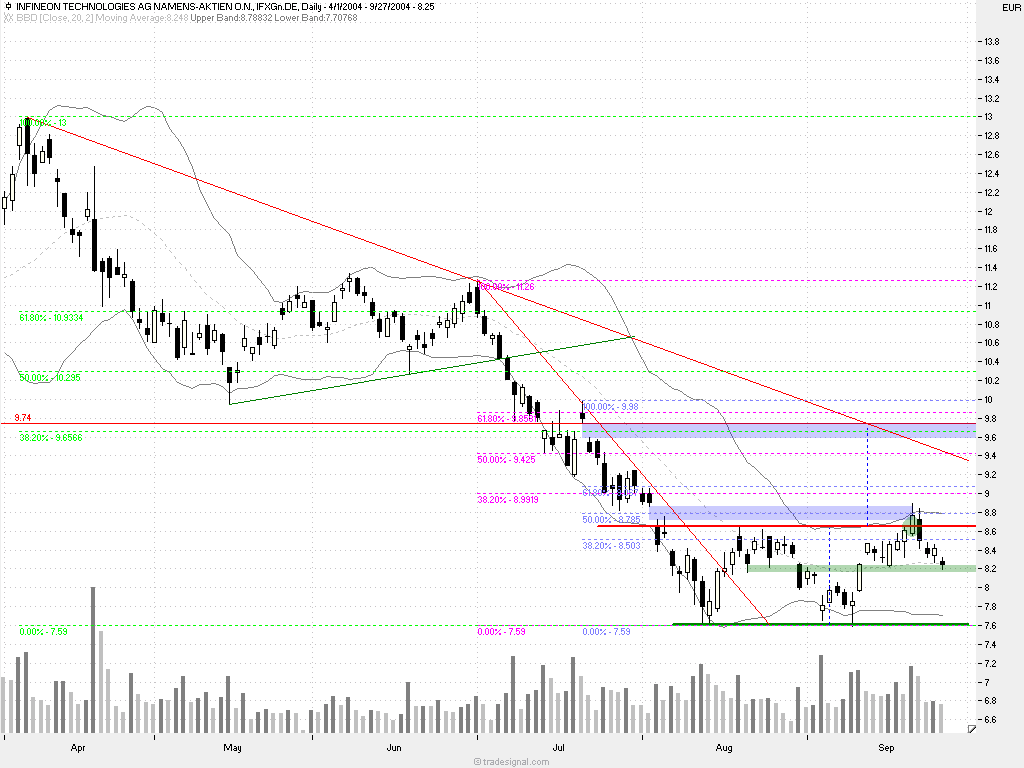 Diese Entwicklung wundert umso mehr, als rund 70 Prozent der befragten Analysten die Lufthansa-Aktie derzeit mit "Kaufen" bewerten. Aus markttechnischer Sicht befindet sich die Lufthansa-Aktie am Scheideweg. Nach der Ausbildung eines Kurshochs im Juli 1998 im Bereich der Marke von 28,08 Euro erfolgte der Übergang in eine Seitwärtsbewegung, welche im März 2001 mit Bruch der Trendunterstützungslinie im Bereich der 21,80 Euro in eine Abwärtsbewegung mündete.