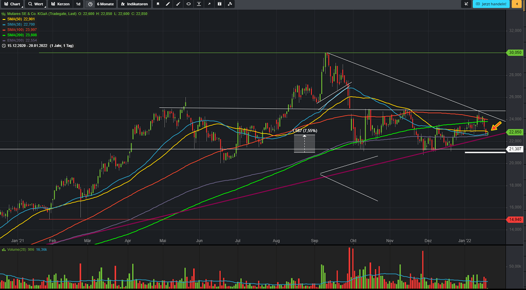 Auf dem Konto bringt das Geld momentan eh kaum was und bis zur auszahlung der Dividende ist es ja auch nicht mehr lange hin. Zudem trage ich somit ein mini kleines bischen dazu bei, den Kurs von MUTARES zu stützen, die entwertung meines restlichen in Mutares investierten Kapital aufzuhalten und senke meinen EK ein wenig. Nun muß nur noch die Unterstützung halten, die Pandemie beendet werde, ein fetter Deal bekannt gegeben werden, der drohende Krieg auf Diplomatischem Weg gelöst werden, die Sonne scheinen und der Mai kommen;-)