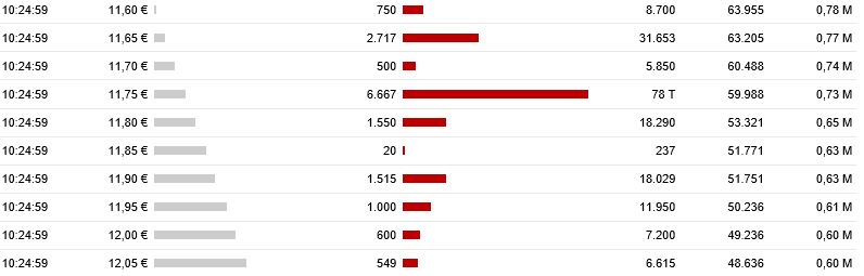 Stimmt, die Käufer stellen keine Blöcke von 30.000 Stück rein. Klar, können Privatpersonen sein, und ganz sicher sind die auch auf der Ask wie auch auf der Bid-Seite zu finden.