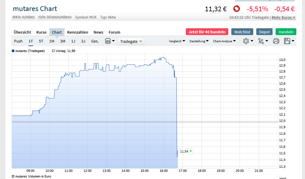 Die Zahlen von Mutares würden eigentlich eine 15€ locker hergeben. Wann wir die 15€ sehen, ist nur eine Frage der Zeit. Dieses Jahr wohl leider nicht mehr, auch wenn es absolut gerechtfertigt wäre. Ich rechne mit der 15€ aber spätestens im 1. Quartal 2020, aber definitiv VOR der Dividende.