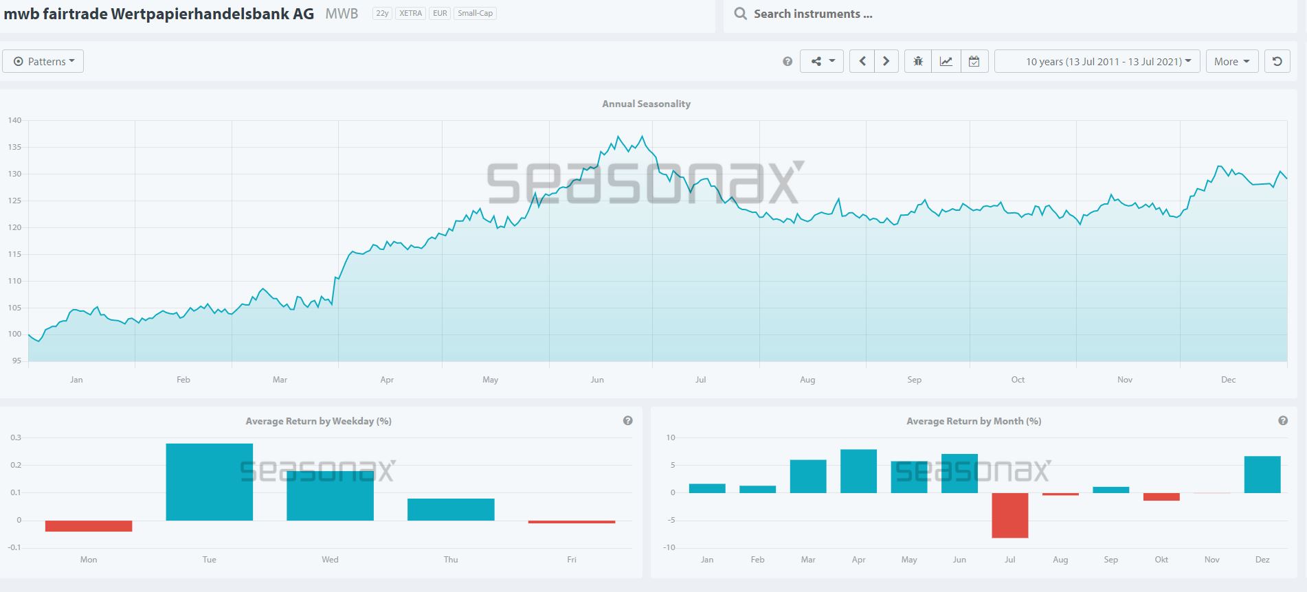 Man hat im 1. HJ 1,94 EUR pro Aktie verdient (vor Fonds für allgemeine Bankrisiken und Steuern), vs. 1,83 EUR in HJ1 2020. Wenn man die 7.925.000 EUR Halbjahresüberschuss (nach Fonds, nach Steuern und Kosten) nimmt und durch die rund 60 Mitarbeiter teilt, ist das ein Gewinn pro Mitarbeiter von 132.000 EUR. Mir fällt gerade kein Unternehmen ein, das ähnlich profitabel agiert. Okay Lang & Schwarz evtl., da bin ich nicht so im Thema.