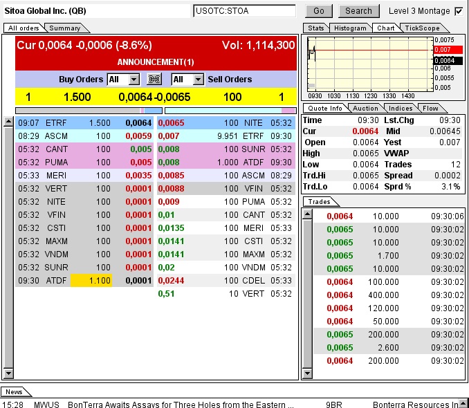 bit.ly/TechnicalReportSitoa Global Inc. (OTCQB: STOA) provides an easy-to-use and comprehensive platform, the "Focused Social Marketplace" that enables online retailers to deploy a social marketplace e-commerce site. Sitoa's platform allows building marketplaces for online sellers with focused social customer networks to expand their sales channels without the risks of focus dilution, and increased capital and operating costs. Sitoa shares in revenues generated by the site in addition to charging integration and hosting fees. Get the full technical analysis for STOA here: