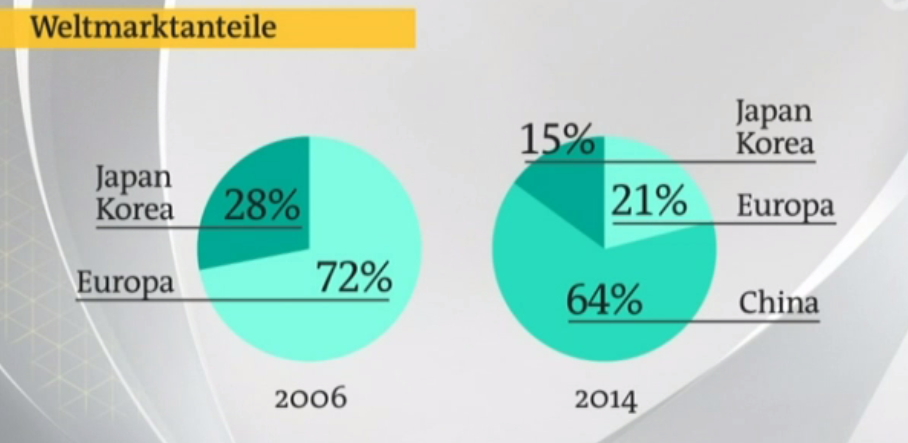 Nach zehn fetten Jahren folgt nun der Schock. Auf chinesischen Schienen fahren modernste Schnell- und Nahverkehrszüge. Nur werden sie nicht mehr von Siemens, Alstom oder Bombardier geliefert, sondern von den beiden großen chinesischen Staatsunternehmen. Die europäischen Hersteller sind zu Zulieferern von Teilen degradiert worden. Noch viel schlimmer wiegt allerdings, dass die chinesischen Konzerne die Führungsrolle auf dem Weltmarkt gleich mit übernommen haben. Beherrschten noch im Jahr 2006 Siemens, Alstom und Bombardier den überwiegenden Teil des Weltmarktes und China spielte kaum eine Rolle, hat sich das binnen acht Jahren fundamental gewandelt. Die beiden kürzlich fusionierten chinesischen Produzenten haben den Weltmarkt erobert und beherrschen ihn zu 64 Prozent. Die Europäer liegen weit abgeschlagen dahinter.