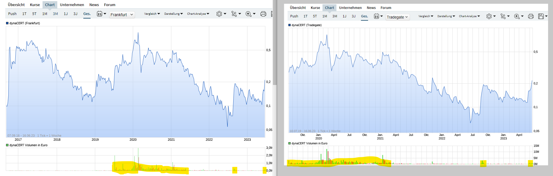 Nur Verkäufe von Dynacert können den Kurs nachhaltig bewegen. Oder eben auch keine Verkäufe.