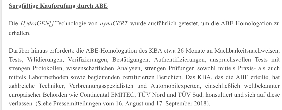 Soweit mir bekannt ist, hat DynaCert ja die Zulassung bereits für MAN Fahrzeuge.