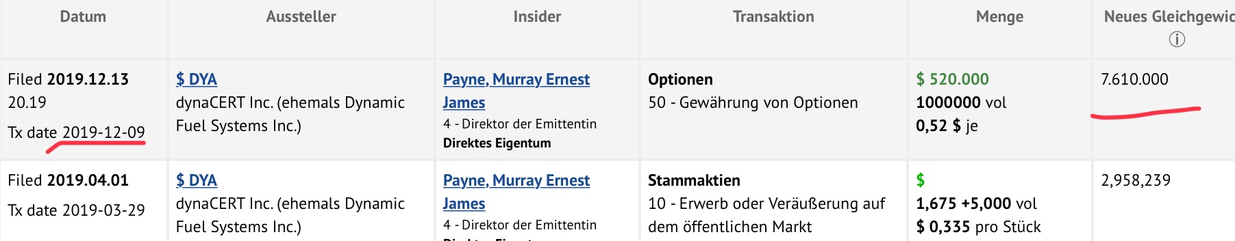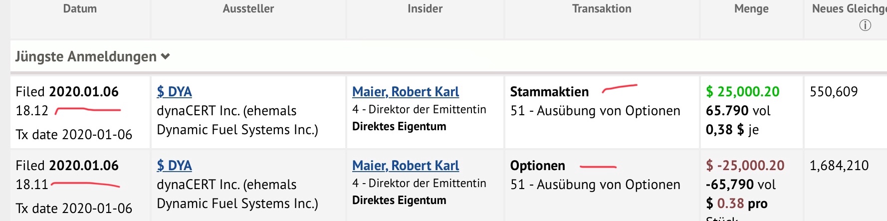 Was Dynacert betrifft, bin ich sehr zuversichtlich. Das neue Jahr beginnt gut und wir wollen hoffen, dass es so weitergeht. Aber da mache ich mir keine grossen Sorgen. Ich freue mich mit allen, die hier investiert sind. Bitte nicht böse sein bezüglich des Tips. Jeder muss natürlich selbst entscheiden, was für ihn richtig ist. Der Hinweis soll keine Kaufempfehlung sein.