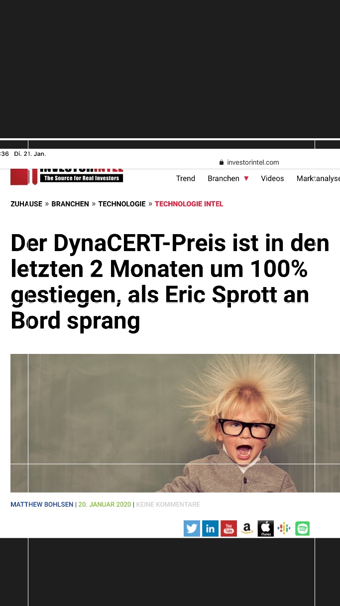 Die 150 Mille Umsatz in 2020 die dynacert kürzlich angegeben haben sind 2,5 mal mehr als GBC noch im Bericht geschätzt hatte.