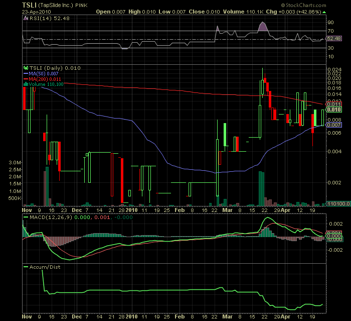 On February 19, 2010, TapSlide, Inc. submitted a non-binding letter of intent to acquire certain assets and liabilities in connection with the Chapter 11 filing of Addamo Estate Vineyards in Santa Maria, CA. The website is www.addamovineyards.com. Further details will be forthcoming.