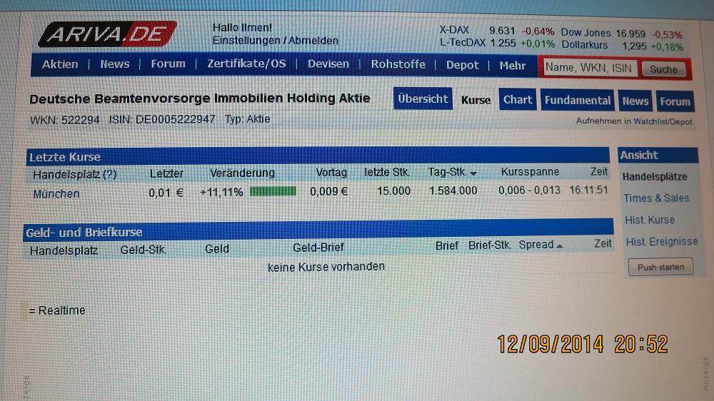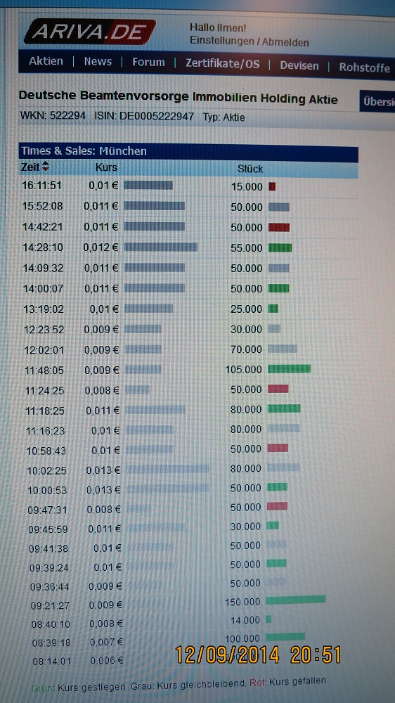 Wie im Forum hier schon mal besprochen hat dieser Wert keine Meldeschwellen und könnte deshalb auch sehr interessant für Beuttenmüller und Co sein, da sie erst garnicht melden müssen und hier die MK auch noch sehr gering ist! Das macht meiner Meinung nach ganz schön Fantasie her, denn wenn hier SD pusht und auch noch einen Grossteil der Aktien aufkauft und hält ist hier vieles möglich siehe Uniprof. Im Jahr 2010 hatten wir auch einige so krasse Szenarien, wie z.B. Tria, Ision, Mania, Arquana, Emqtec, u.v.a., die locker 1000% gemacht haben und da hat sich sogar mehr ausgezahlt wenn man einige Wochen drin blieb, und nicht gleich 400% mitgenommen hat:-) Nachvollziehbare Erklärungen für die Anstiege kamen nie- aber dennoch konnte man sehr viel Geld verdienen. Allen eine gute Woche und viel Glück!