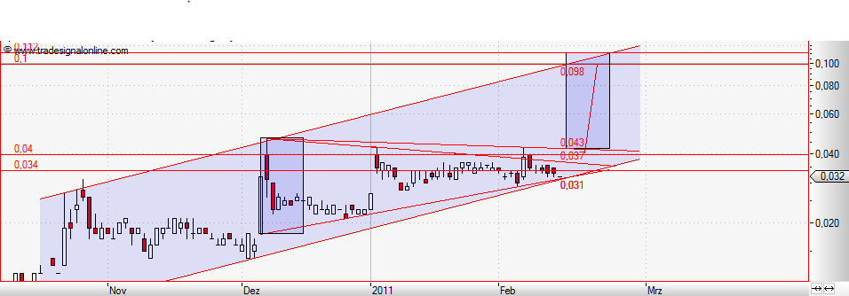 Charttechnisch ist noch alles im Lot...bis Freitag sollten eigentlich die 0,035 stehen, wobei mein Tip ja bei 0,03 liegt.