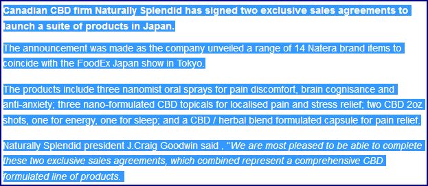 With a current market cap of just C$22.75m and an imminent legalization of recreational marijuana as well as CBD products in Canada, Naturally Splendid looks heavily undervalued. We also expect that the recently appointed CEO, Dave Eto, will use his powerful network to acquire a lot of new clients for HempOmega® so we wouldn’t be surprised to see Naturally Splendid reaching a market cap north of C$100m in 12 months from now.