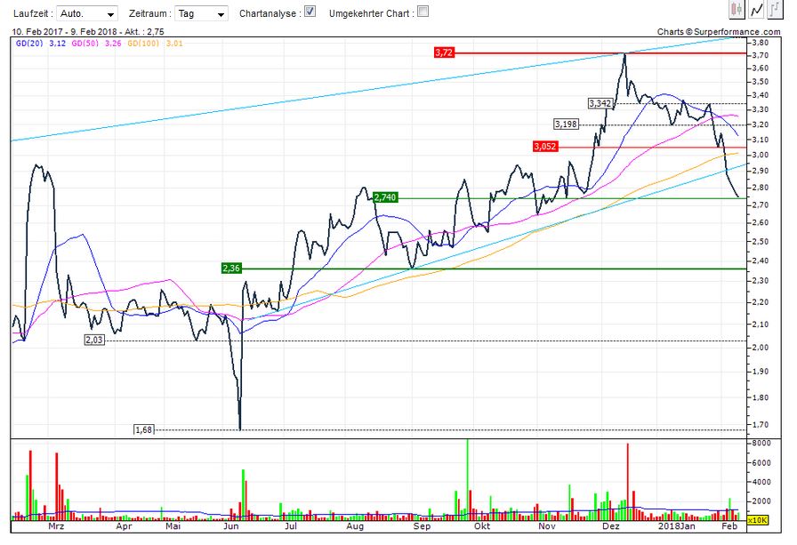 Der Kurs hat sich heute in Oslo tatsächlich noch über die Unterstützung bei 2.74 NOK gehievt.