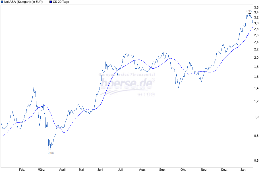 NEL ist die Aktie, von der die Deutschen am meisten gekauft haben. Am Montag fiel die Aktie nach einer neuen Verkaufsempfehlung von Pareto zurück, aber die Aktie ist im vergangenen Monat immer noch um 23 Prozent gestiegen.
