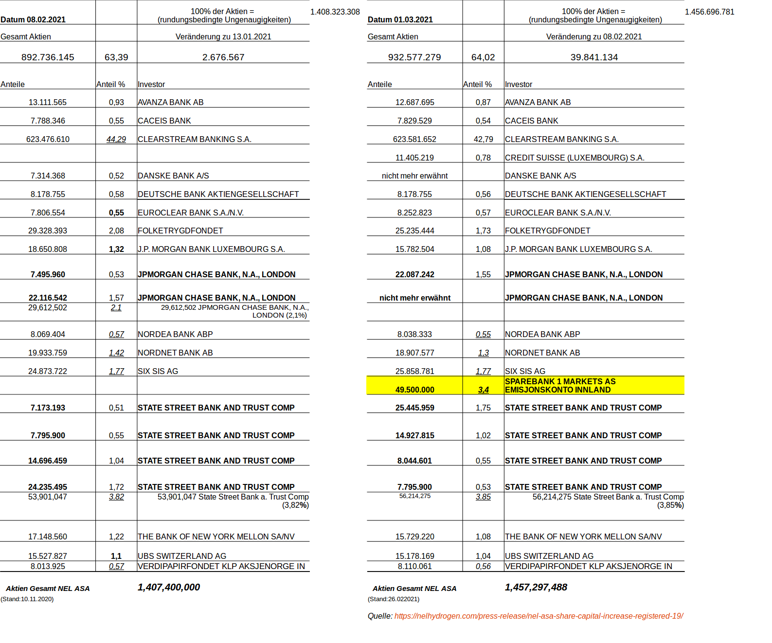 In Bezug auf Wasserstoffstationen und Partner. Dort versuchen wir, etwas flexibler zu sein, da wir erkennen, dass es verschiedene Optionen und Konfigurationen geben kann. Deshalb müssen wir flexibel sein, wie wir über die Auswirkungen denken. Wir glauben jedoch an den Gesamtkontext von 225 Millionen, 230 Millionen, den wir für 2021 bereitstellen. Wir glauben, dass wir genug Flexibilität haben werden. Jetzt ist es durchaus möglich, dass wir gerade im zweiten Quartal - in der zweiten Jahreshälfte - und wenn wir feststellen, dass wir bei der weiteren Zusammenarbeit große Chancen haben und dass wir möglicherweise die Investitionen beschleunigen müssen, wenn es darum geht Wasserstoffseite werden wir sicherlich den Markt aktualisieren.