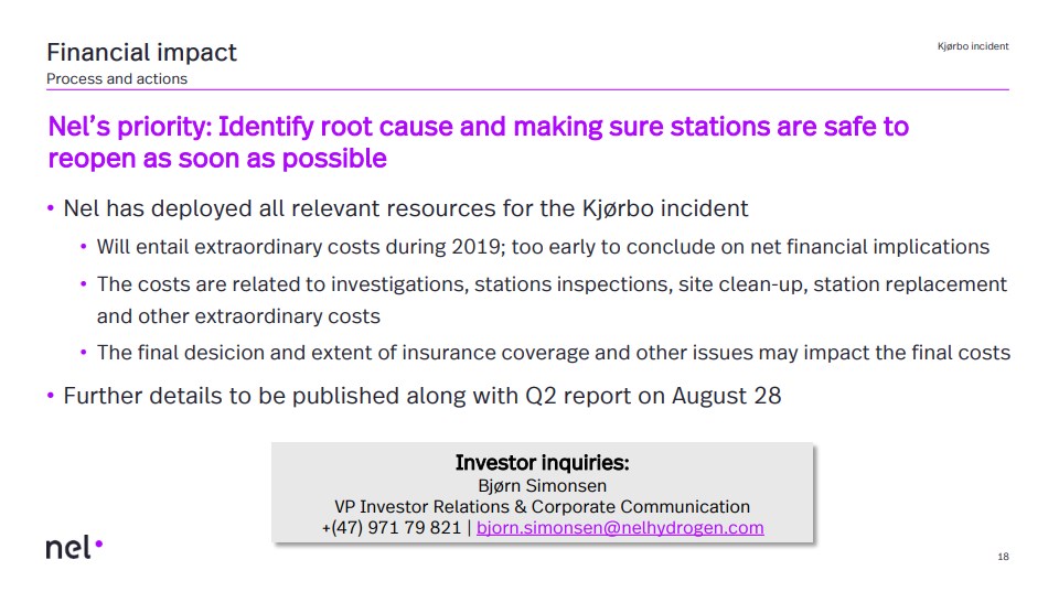 Neben den Stationen von Uno-X in Norwegen hat Nel angegeben, dass aufgrund der Explosion weitere zehn Stationen geschlossen wurden. Das Unternehmen hat den Betreibern von Stationen in Europa und den USA empfohlen, ihre Stationen bis zur Klärung der Ursache der Explosion zu schließen.