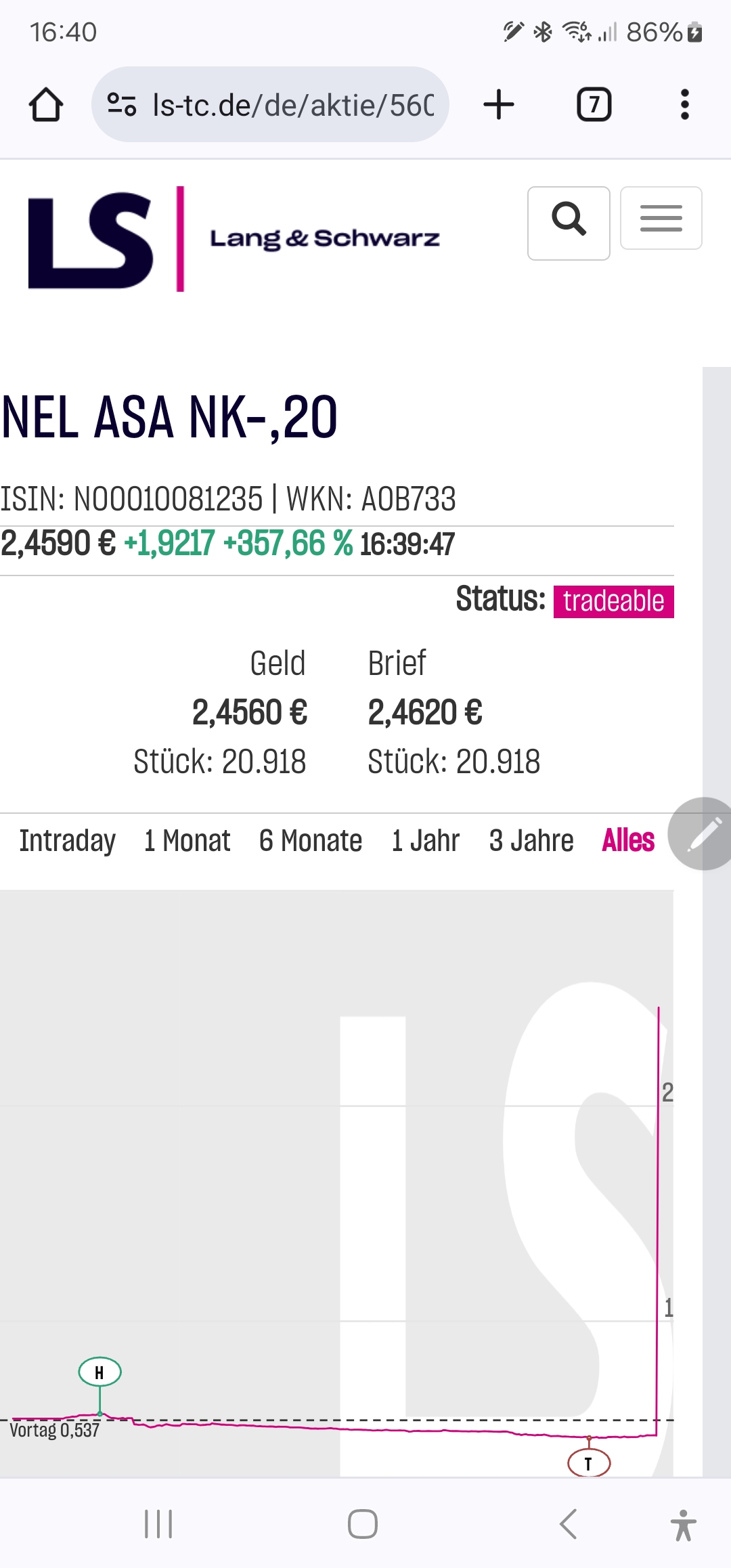 Schade hatte gehofft das der NEL-Aktienkurs noch weiter hoch läuft. Leider hat unser Börsenplatz einen Surf-Club wie ich glaube, der diesen Hochlauf unterbrochen hat. Alle Surfer, haben die Shortis durch Verkauf ihrer Aktien bedient und selber Gewinne in die Tasche gesteckt. Nicht schlecht,- aber langweilig. Wir Aktionäre sollten das wiederholen, (wer das kann,) vor den 17.04.- mit dem Anspruch, besser und so lange wie möglich die Aktien im Depot zu belassen.