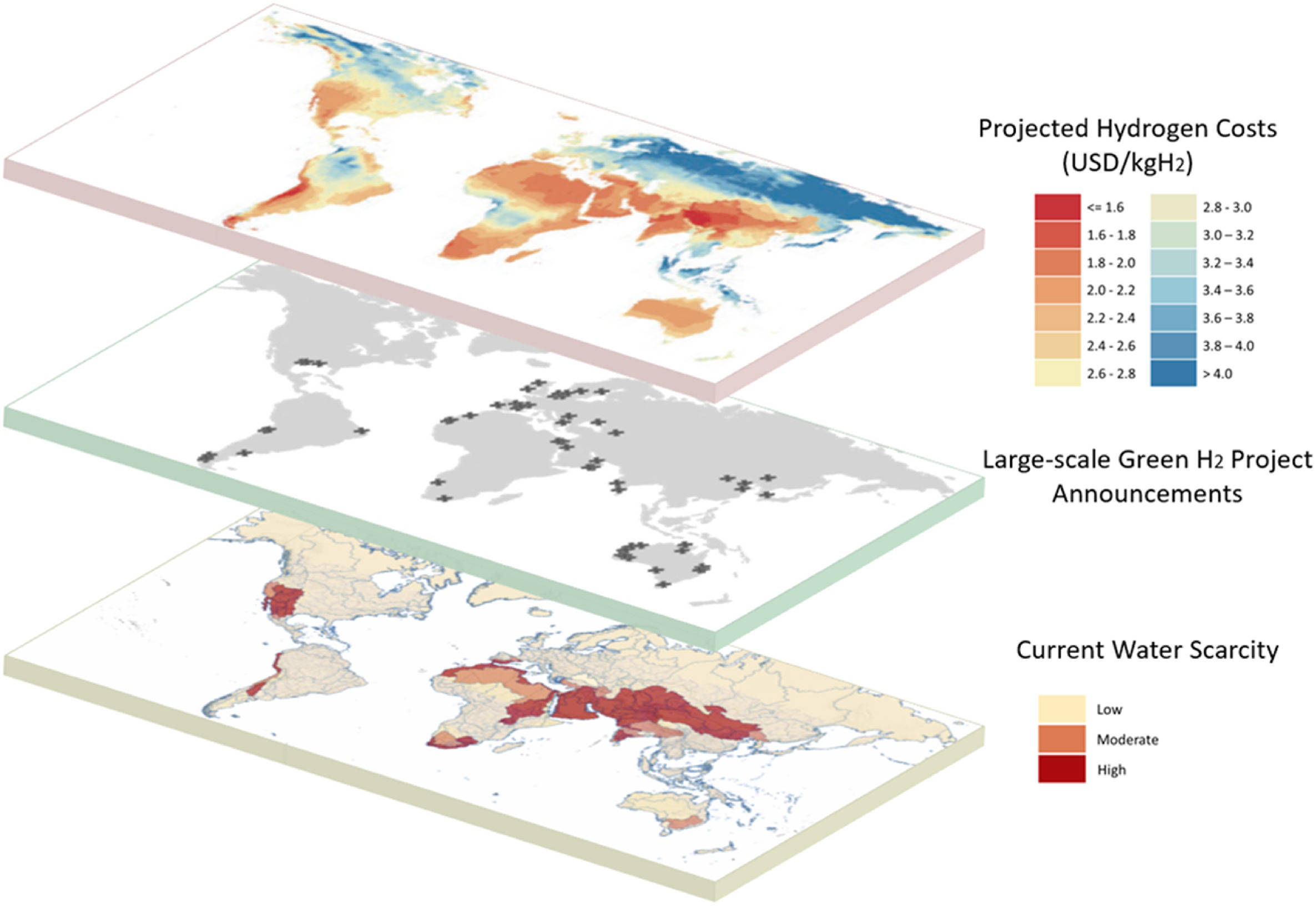 Kritische Industrien wie die Landwirtschaft beanspruchen den größten Anteil (70 %) aller Süßwasserentnahmen. Insbesondere in trockenen Regionen, wird dieses Wasser nicht nachhaltig genutzt. Dies ist besorgniserregend, da der weltweite Süßwasserbedarf voraussichtlich steigen wird und sich bis 2050 allein aufgrund des Bevölkerungswachstums und des verbesserten Lebensstandards verdoppeln oder vervierfachen könnte. Daher ist die Umleitung von Wasserressourcen in andere Industrien, wie die Produktion von grünem Wasserstoff, mit Opportunitätskosten verbunden, die sowohl von staatlichen als auch von privaten Unternehmen umfassend berücksichtigt werden müssen.