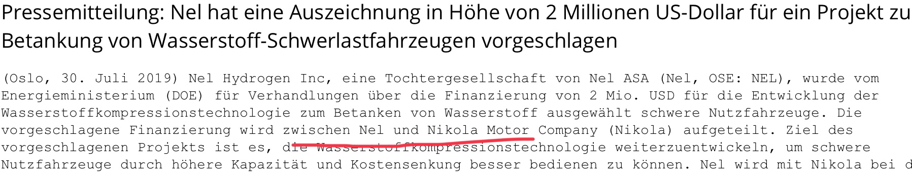 Es wird auf die Börsenmitteilung vom 14. Dezember 2018 verwiesen, in der ein Zuschuss im Rahmen des PILOT-E-Programms für die Entwicklung und Realisierung eines Gründüngerprojekts zusammen mit Yara angekündigt wird. Ziel des Projekts ist es, eine emissionsfreie Düngemittelproduktion mit innovativen Lösungen und einer kostengünstigen Wasserstofferzeugung aus Elektrolyse auf Basis erneuerbarer Energien zu realisieren.