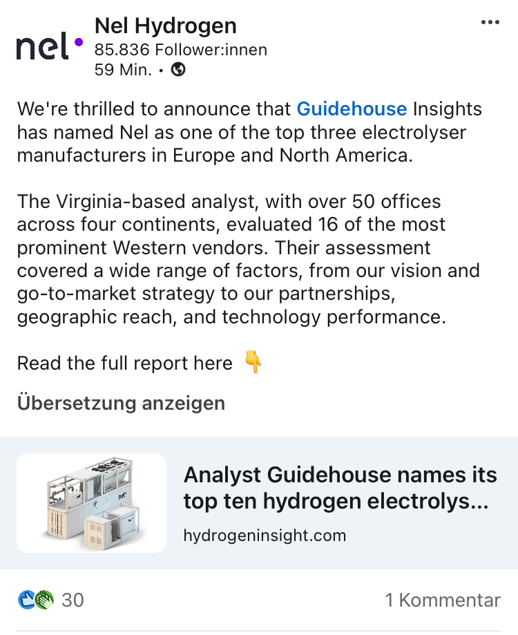 Quelle zu den folgenden Aussagen: nelhydrogen.com/reports-and-presentations/