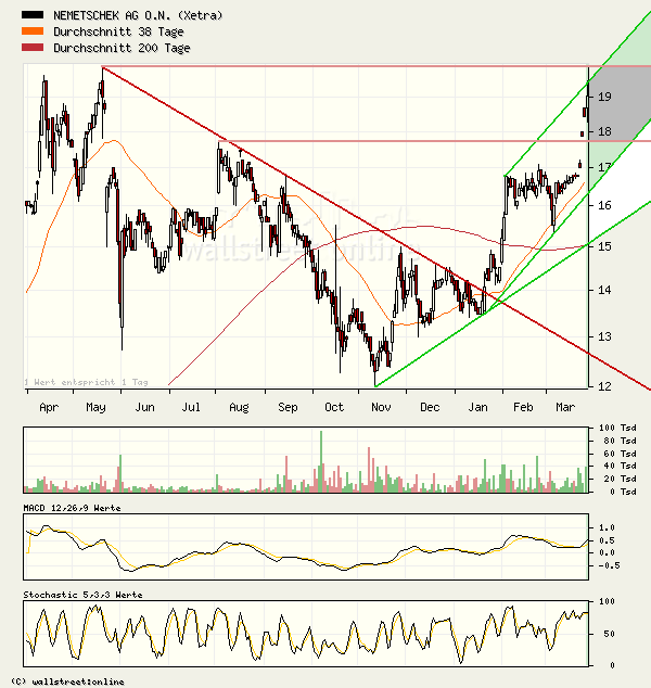Wieso soll ich also eine Aktie mit KGV06 von 12,5-14,0 bei noch 4 € Cash pro Aktie und einer Div-Rendite von 3% nicht kaufen? Und das anorganische Wachstum muss ja noch lange nicht zu Ende sein. Ganz davon abgesehen ist Nemetschek bei den letzten Präsentationen sehr optimistisch, dass die Baukonjunktur jetzt auch in Deutschland wieder anzeht und man so organisch wachsen wird.