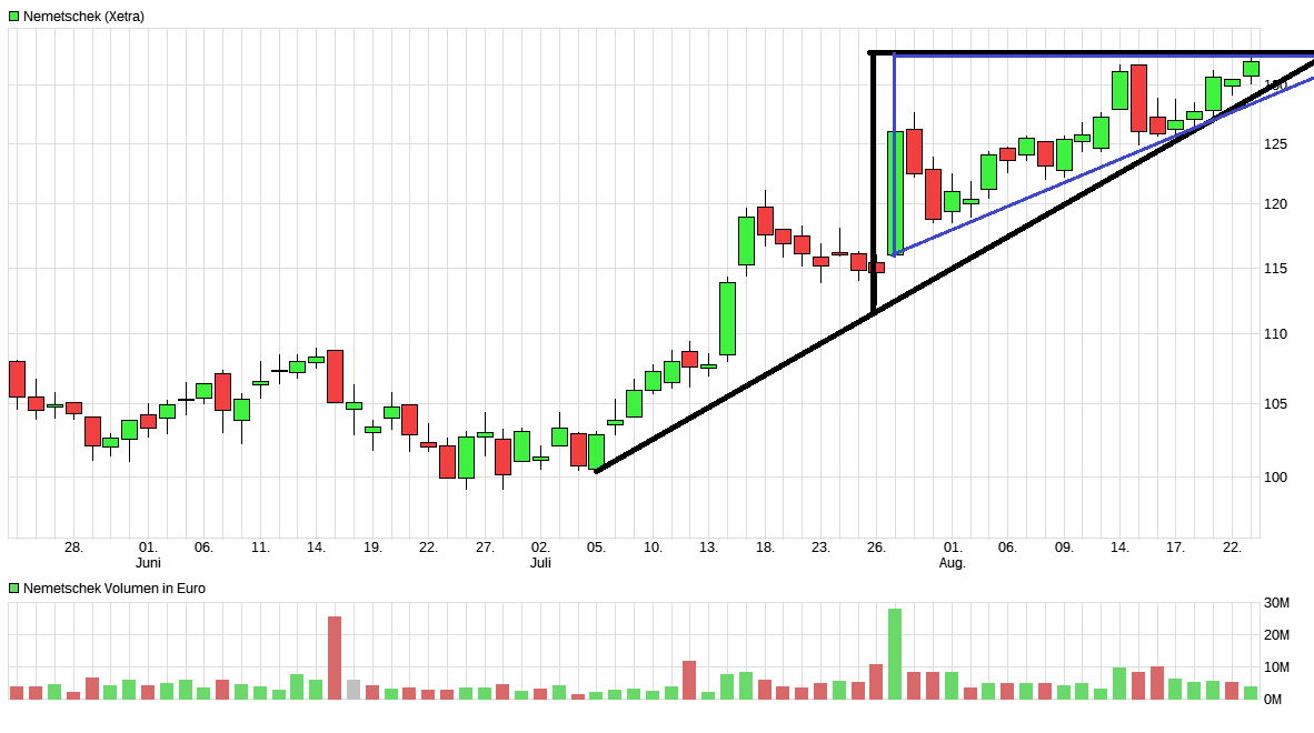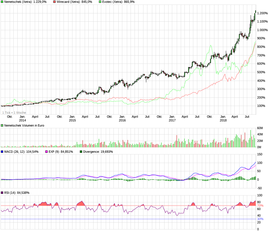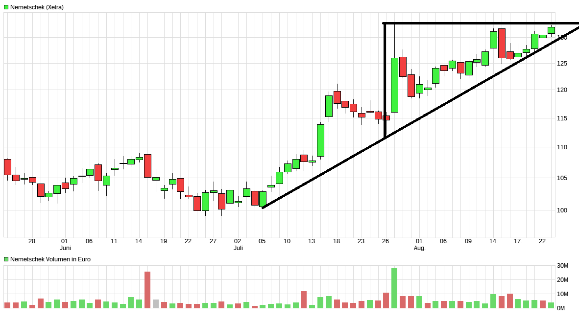 Umgekehrt ist doch die Frage wieso Nemetschek unbedingt weitere gekauft werden muss. Nur weil sie im Uptrend ist? Mir ist die Börse derzeit einfach zu hoch, siehe auch Einhell heute. Dort sogar im Uptrend und gute Zahlen bei geringere Bewertung. Trotzdem im Minus. Nemetschek soll jetzt ein Kauf sein, weil sie im Uptrend auf allen Ebenen ist und ein bullishes Dreieck auf kurzfristiger Ebene hat? Trotz KUV von 11 und EV/Ebitda von 40 und KGV über 70? So hoch sind ja die organischen Wachstumsraten nun auch wieder nicht.