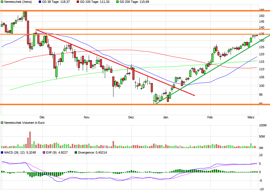 schon wieder runter ; erste Unterstützung bei € 126,5