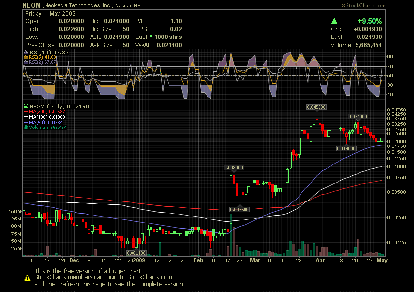 www.buyins.net. Neomedia Technologies Inc (OTCBB: NEOM) zusammen mit seinen Tochtergesellschaften, stellt ein Gefolge der Software und Hardware zur Verfügung, um 1. und 2. Strichcodes in der beweglichen Umgebung zu bearbeiten, und Anwendungen in beweglichem Marketing, beweglichem couponing, beweglichem ticketing und beweglicher Zahlung in Europa und international zu ermöglichen. Seine Strichcode-Ökosysteme schließen NeoReader, einen Strichcode ein, der Anwendung scannt, die bewegliche Kamerakopfhörer in Strichcodeleser umgestaltet; NeoReader-Unternehmen und Lavasphere Unternehmenssoftwarelösungen, die bewegliche Geräte ausstatten, um 1. und 2. Strichcodes für kommerzielle Anwendungen zu lesen; NeoSphere, ein Webbasiertes Kampagneverwaltungssystem für Benutzer, um sich zu entwickeln, um loszufahren, und eine bewegliche Codekampagne zu führen; wühlender NeoMedia-Codedienst, um wiederzubekommen und Internet zu liefern, befriedigt zu Mobiltelefonen; und NeoMedia MSS, ein System, das ticketing/couponing Drittsysteme und Datenbanken unterstützt. Die Gesellschaft stellt auch Hardware-Produkte zur Verfügung, um Strichcodes und Strichcode-Information zu lesen, zu interpretieren, und zu übersenden. Seine Hardware-Produkte schließen EXIO II, eine Mehranwendung kluger Scanner für beweglichen couponing und ticketing Anwendungen für Kunden ein, um bewegliche Karten und Gutscheine einzulösen; und XELIA, ein vielseitiger Tischscanner, die ermöglichen, von 2. Codes von Mobiltelefonanzeigen zu lesen, sowie automatisch gedruckte 1. Strichcodes und 2. als SMS-Nachrichten gesandte Codes anerkennen. Die Gesellschaft \ Vermächtnis-Softwareprodukte schließt MaxiCode Encoder ein, der Symbole im Druckstrom der Wahl schafft; tragbarer Datum-Encoder der Datei 417, der Strichcode-Druckströme für die Arbeitsfläche, des mittleren Bereichs, und Großrechner-Plattformen schafft; und Wang-Austausch-Quellverarbeiter, ein einheitlicher Satz von Dienstprogrammen, die die Wanderung von Wang GEGEN COBOL-Anwendungen auf die offenen Systeme und Internetbereite Welt von UNIX oder Windows NT erleichtern. Außerdem, NeoMedia Angebote, die Anwendungen im beweglichen Marketing, couponing, ticketing, und Zahlung ermöglichen. Die Gesellschaft wurde 1989 gegründet und hat Hauptsitz in Atlanta, Georgia. Mit 1.3 Milliarden Anteilen hervorragend und 519.500 Anteilen erklärte kurz bezüglich des Aprils 2009, es gibt nicht mehr einen Misserfolg, in Anteilen von NEOM zu liefern. Gemäß vierteljährlichen durch den SEC zur Verfügung gestellten Daten gab es noch 21.053.832 Anteile von NEOM, die "scheiterten", bezüglich am 19. November 2007 zu liefern. Neue Bederra-Handelsgesellschaft (OTC: BEDA) stellt medizinische diagnostische Dienstleistungen zur Verfügung. Seine diagnostischen Bildaufbereitungsmöglichkeiten stellen Dienstleistungen, wie Kernspinresonanz-Bildaufbereitung, computerisierte Tomographie, Ultraschall, Röntgenstrahl, Kernmedizin, und verschiedene diagnostische Herzdienstleistungen zur Verfügung. Die Gesellschaft wurde 1979 gegründet und beruht in Houston, Texas. Mit 644.000 Anteilen hervorragend und 39.400 Anteilen erklärte kurz bezüglich des Aprils 2009, es gibt nicht mehr einen Misserfolg, in Anteilen von BEDA zu liefern. Revenge Designs, Inc (OTC: RVGD) Designs und Fertigungsautos und Zusätze. Es bietet auch magnuson Überverdichter, Felgen, kurzen Schichtarbeiter-Bastelsatz, Differenzialteile, Leistungsbremsen, Abgasanlagen des rostfreien Stahls, aerodynamische Stamm-Flügel, Kohlenstoff-Faser-Hinterseite-Verzierungen, und Sportspiegel an. Die Gesellschaft hat Hauptsitz in Decatur, Indiana. Mit 1.74 Milliarden Anteilen hervorragend und eine geheim gehaltene kurze Position gibt es nicht mehr einen Misserfolg, in Anteilen von RVGD zu liefern. Gemäß vierteljährlichen durch den SEC zur Verfügung gestellten Daten gab es noch 45.438.084 Anteile von RVGD, die "scheiterten", bezüglich am 18. März 2008 zu liefern. Über BUYINS.NET ist
